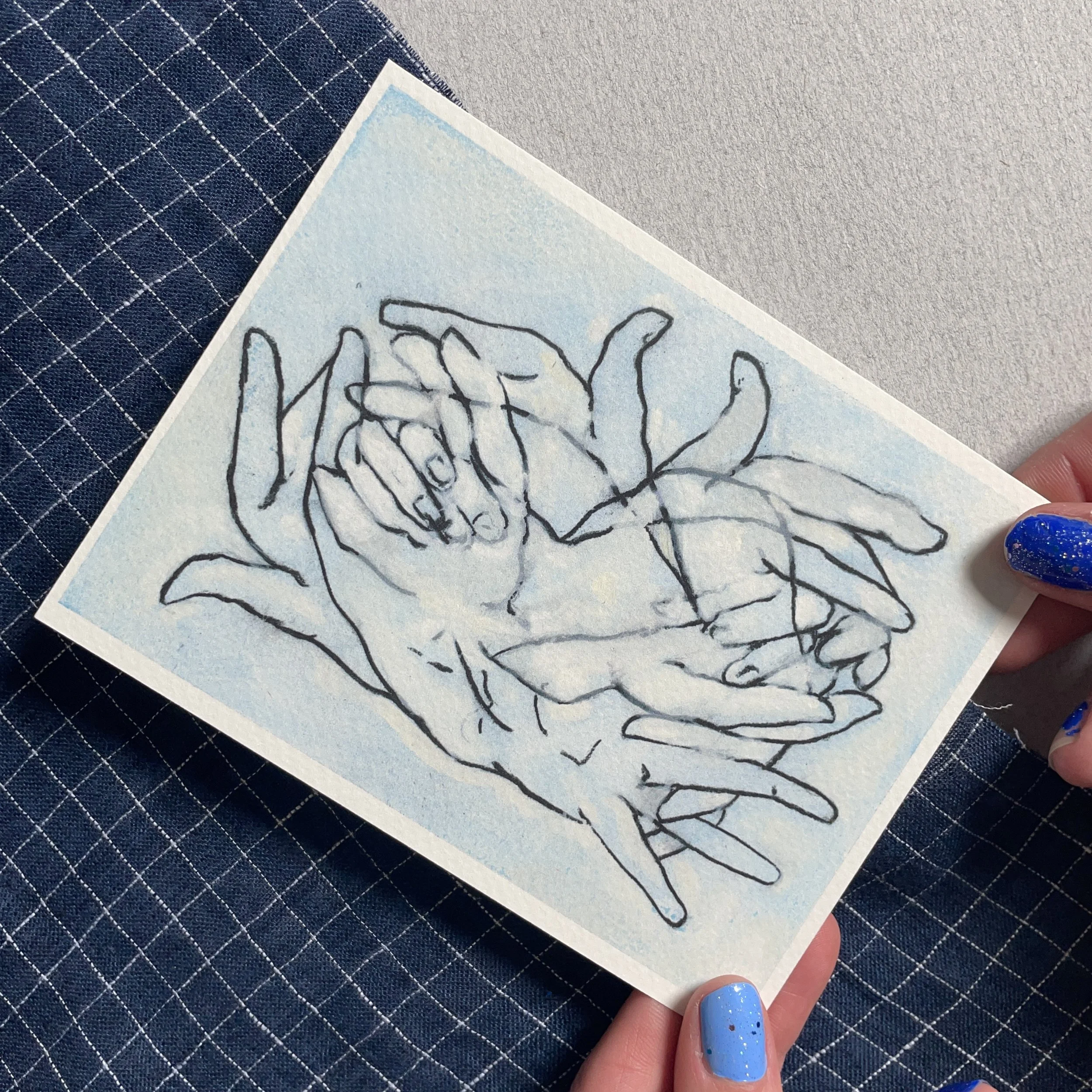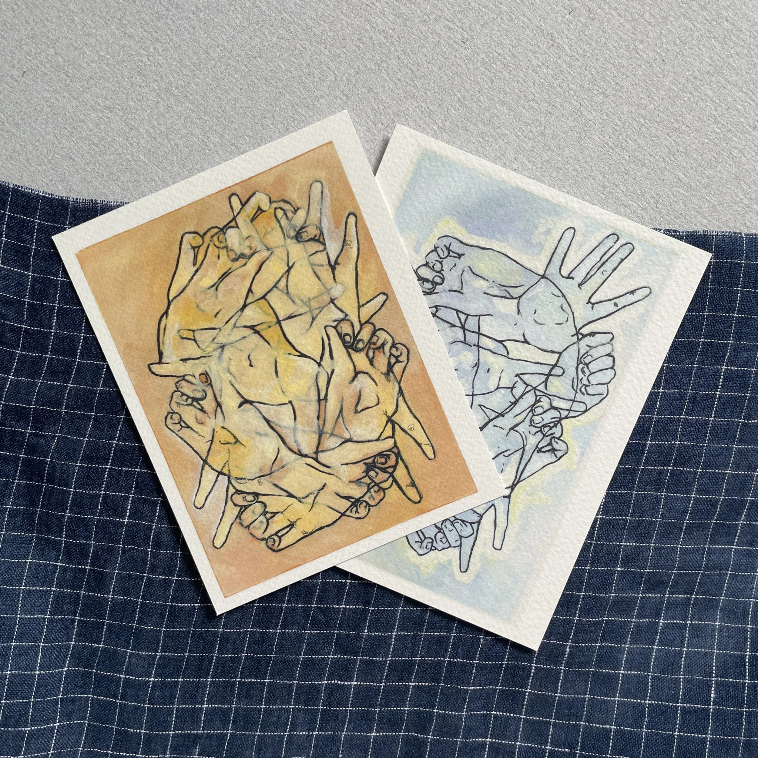 These are 4.5 x 6 inch postcard sized prints.They are from oil and charcoal paintings that have been digitized and printed onto cold pressed, acid- free, mid-weight watercolour paper.